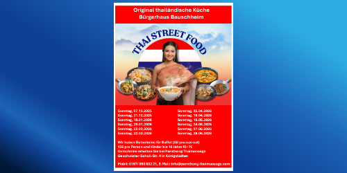 Ab dem 7. Dezember 2025 an ausgewählten Sonntagen im Bürgerhaus Bauschheim original thailändische Küche entdecken und genießen.